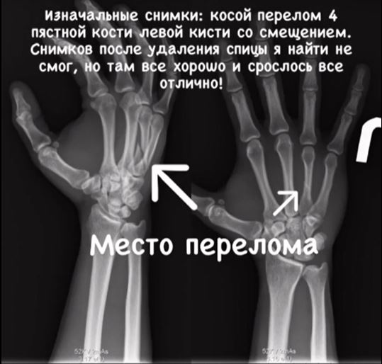 Дело в том, что мужчина получил травму 4-й пястной кости, после чего ему провели остеосинтез штифтом-спицей в одной из больниц Москвы.